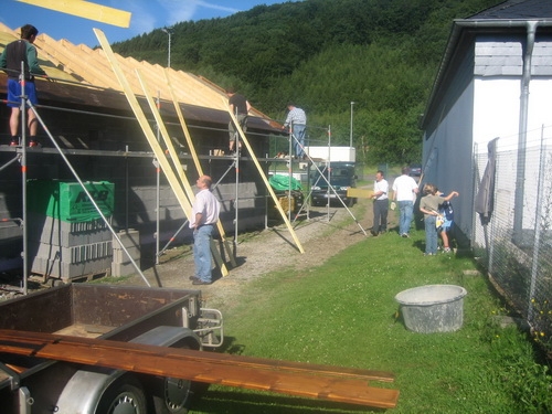 Aushub 2007 Fundament Einfassung Bodenplatte Maurerarbeiten Maurer Robert Dacheindeckung Dacheindeckung 2 Pause Richtfest Verputzen 1 Verputzen Estrich Estrich 1 Innenausbau Randeinfassung Bauprojekt fertig gestellt